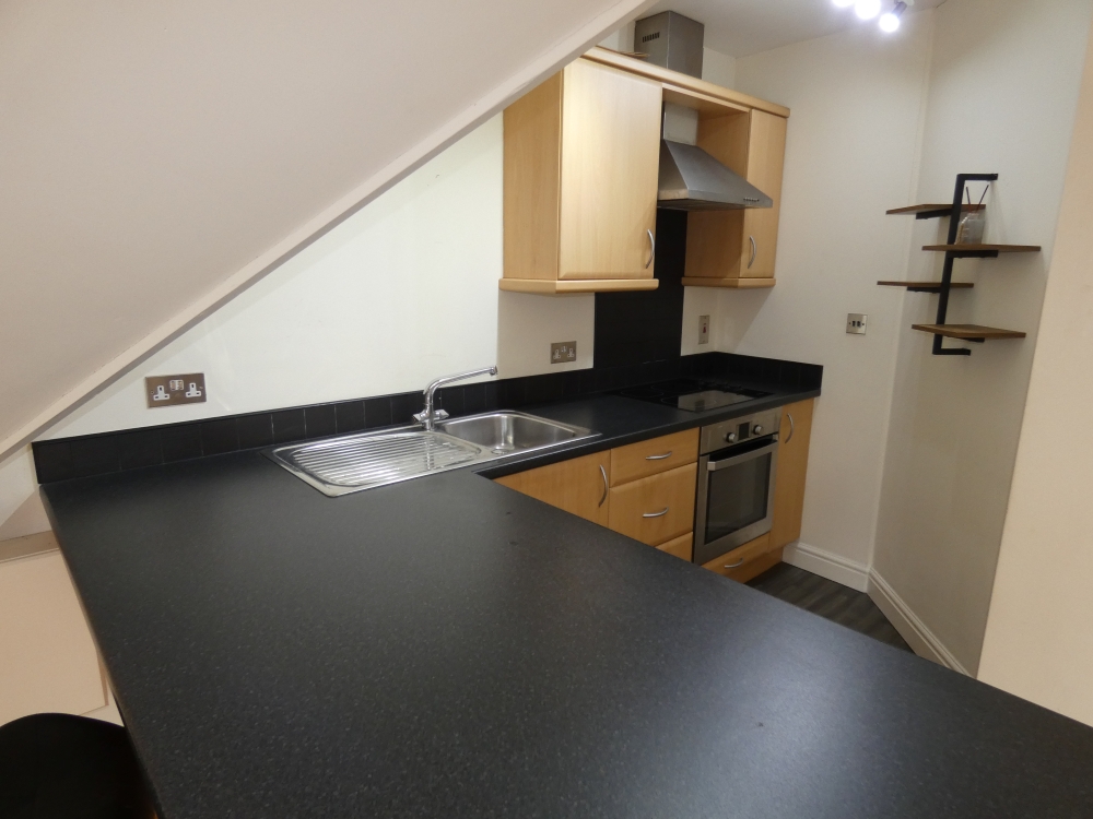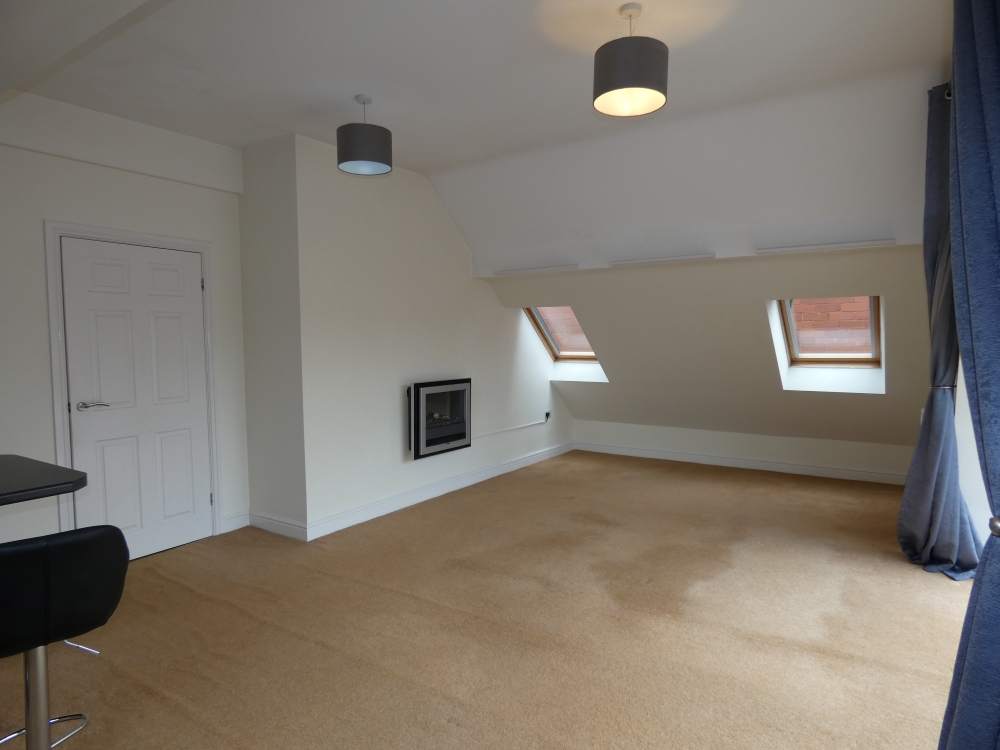 This is a superb one bedroom penthouse apartment in a well renovated Church building ( There is a lift to take you to direct to your floor) . The whole building has been re planned with original features being retained and now houses purpose built flats, all with electric central heating – and a lift to all floors. (Winner of a Quality Housing Award). This flat has superb windows in the lounge